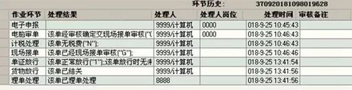 小王检查确认所有报关资料已齐全,于2018-09-25 10:45申报,10:46就收到“海关审结”回执。(备注:该单无需交纳税款)